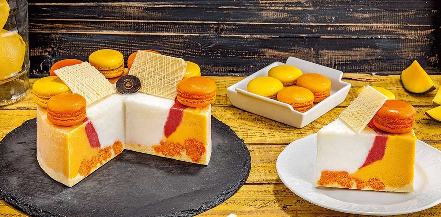 Vanille, fraise, mangue, citron macarons mangue et citron