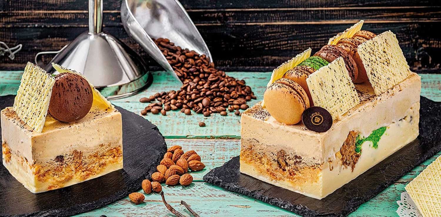 Vanille, Praliné, Caramel, Parfait café, Macarons